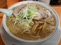 長岡の人気店「安福亭」の支店、神田店です。何度かのっけていますが、くにちゃんはこちらの方が好みです。今年2杯目のらーめん。12時ちょっと前の訪問。第2駐車場の唯一の空き場所に車を停め、待ちかなと思いながら店内へ。券売機でらーめん¥700と餃子¥500を購入して、唯一空いているカウンター席へ。ここは結構回転率良いですからね。次々と空いたり座ったりで、相変わらずの盛況ぶり。数分でらーめん登場。待っている間にふとカウンター上を見てショック!ネギサービス終了の張り紙。ネギをたっぷり入れて食べるのが楽しみだったのになあ。来たらーめんにはネギの入った風景が・・・ でも美味いや!