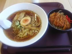 ベイシアスーパーセンター小千谷店のフードコートです。お世話になっている小千谷駅近くのスズキのディーラーさんのお仕事です。当初ラウムのルームクリーニングごご依頼で伺いました。作業中に会長さんからステラのシートのクリーニングも併せてご依頼を頂き、ただ持ってきたお湯の量が気がかりなので本日の施工を保留にしたのですが、なんとか行けそうなので、ステラも併せてすることに。そんなこんなで、結局2時過ぎで作業終了。昼飯抜きでやっていたので昼飯食べながらの帰宅。といっても時間が時間だけに空いている店に限りがあります。考えるのも面倒くさいので、帰る途中にあるベイシアスーパーセンター小千谷店によることに。ここのフードコートだったら食べられますからね。ラーメン¥370とミニたれかつ丼¥260をオーダー。すると「¥500になります」だって。なんとセット割引でらーめんとミニ丼で¥500らしいのです。まあ味はフードコートですからね( ´艸`)
