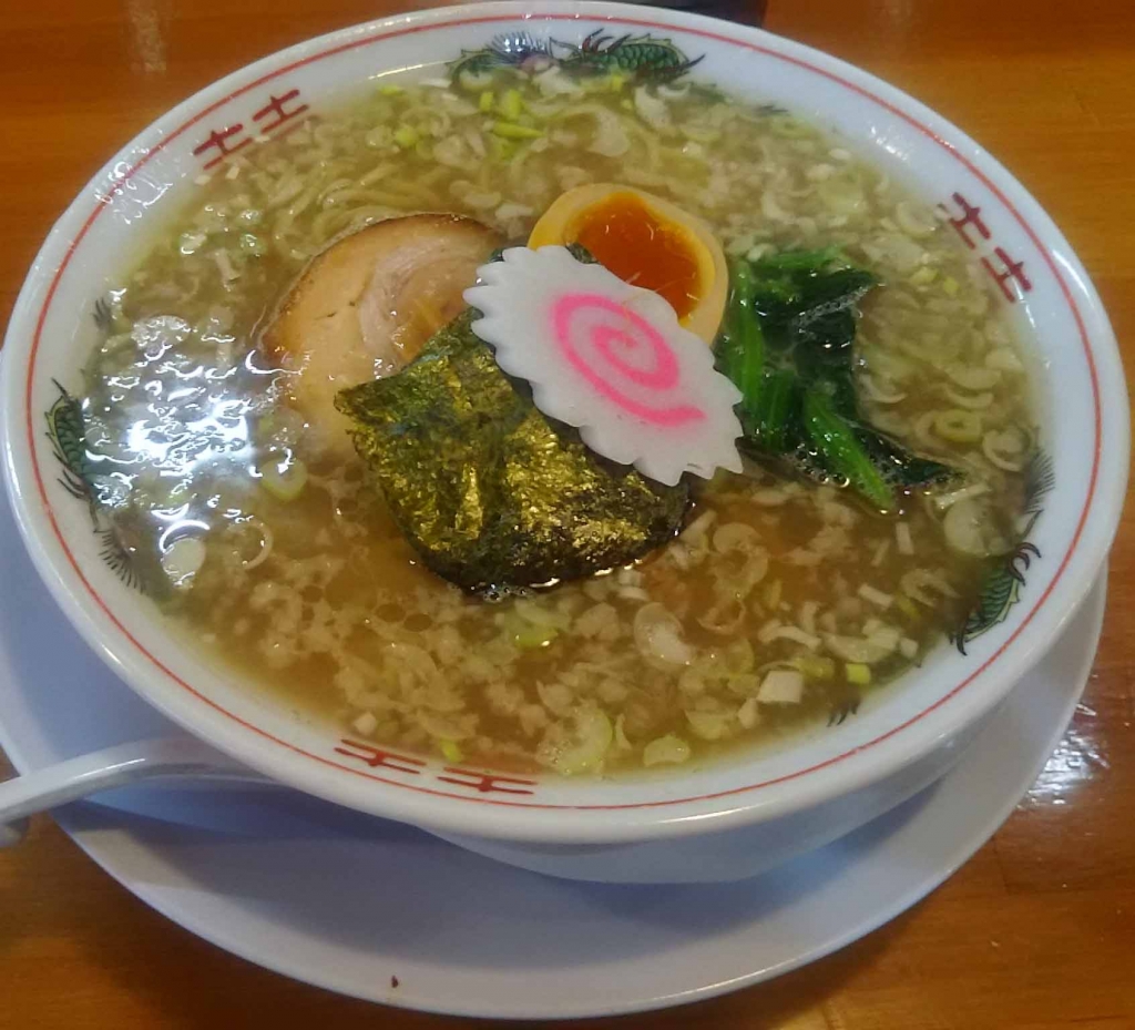 長岡市西神田の人気店「のろし長岡店」です。9月いっぱいの限定メニューですが、3周年記念のThank youメニューとしてありがとうらーめん¥500があるんです。実は今年だけなく昨年も同じようならーめんを出していたんですよ。でも食べそびれたのです。今年は食べてやると思いながらすでに29日。やっとの訪問です。入口の券売機で右下にあるありがとうらーめんを購入し、店内へ。1時過ぎにも関わらず待ち人3組。数分でカウンター席へ。10分ほどの待ちでらーめん登場。背脂の浮いたどんぶりにチャーシュー、なると、半煮卵、青菜にのりとシンプルなトッピング。スープは豚骨に魚介系の利いたあっさり目スープ。中細麺とも合い、なかなかの一杯です。通常メニューにしてほしい一杯ですね。