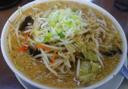 見附市の「麺処 大昇」です。くにちゃん愛用のお店ですね。いや~~久しぶりです。大体見附にらーめん食べに来ること自体久しぶり。少なくとも半年は来ていないですね。来なかったことには全く意味はありませんよ。見附でこってりといったらココですよね。店内のフロアも油でツルツルですからね。足元注意!今日は一番のお気に入りの野菜味噌らーめん¥910大盛+¥100をオーダー。10分ほどで登場。どんぶり並々の味噌スープにドカンと炒め野菜。てっぺんに刻み葱ドッカン。結構ボリューミーですよ。スープを一口。ラードの味がドカンと口の中に。味噌味はあまり・・・(笑) 野菜を炒めたことによる野菜の旨味もスープに。なんだろう?うまっ!と言った感じはしないんですが(失礼な)なんか癖になる味なんです。