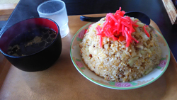 長岡市摂田屋の人気店『喜味屋食堂』です。土日平日関わらず昼時は常に満席と言っても過言ではありません。雨模様の12時過ぎに訪問。おやっ、川挟んだ駐車場には1台も車がありません。ラッキーかも?・・・ 店内はほぼ満席。なんと店前の川横に駐車しているんです。ここも敷地なんですかね?なんとかレジ前の席へ。ここの自慢は何といってもボリューム。普通盛で他店の大盛以上ありますからね。くにちゃんはいつもは味噌ラーメンです。調子のいい時には大盛で( ´艸`) 今日は前から興味のあったチャーハン¥780オーダーです。注文の時に店員さんへ「確か結構なボリュームですよね」て聞くと「普通盛でで2合です」とあっさり。さすがに満席なので待ちますよ。10数分で着丼。やっぱり!