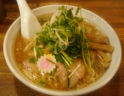 10分ほどの待ちでラーメン登場。背脂は浮いていますがそんなに濁っている感はなく、食欲をそそります。スープを一口。美味い!鶏ガラベースのようで、そこに魚介系で上手くブレンドされた口当たりの良いスープ。麺との相性も良く、トッピングのチャーシューも美味い。かなりのレベルのらーめんです。そりゃ並ぶわ。