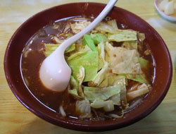 新潟市西蒲区旧巻町の超人気店「こまどり」の寺泊店です。ご存知濃厚味噌ラーメン発祥のお店の寺泊店ですよね。本店には2度行きましたが、こちらには初訪です。実は何度か来ているのですが営業中かわからずに諦めていたのです。でも、今日わかりました。寺泊のメインストリート、アメ横通り沿い側が入口ではなく、裏路地に入口があり、アメ横通り側には営業中の判り辛い看板が置いてあるだけなのです。12時ちょっと前の訪問。店内にはいると1階席はほぼ満席。空いていたテーブル席に座り、メニューを。正直本店とは全く違います。らーめん、特に味噌ラーメンの種類は多くなく、味噌と味噌チャーシューのみ。味噌らーめん¥900と餃子¥600をオーダー。その後も続々とお客さんが訪問。2階席に上がっていきました。10数分の待ちでらーめん登場。およっ、これ?本店とは全く違う。スープを一口。しょっぱめの味噌味。本店に似ていますね。続いて餃子が登場。大振りの餃子。壁には2個¥240、3個¥360の表示も。値段も味も違いますね。でも、これはこれでありでは?!