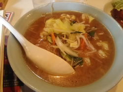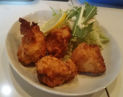 長野ツアー第3食目は上田市の「六文銭」です。今日は上田市周辺の営業のため、昼もこのお店で。実は昨日の夜にとあるお店でおいしいラーメン屋を聞いた時の一店がこのお店。ただ、教えてもらったのは上田駅前のお店。くにちゃんが言ったのはドン・キホーテの近くの国道沿いのお店。正直店舗は古ぼけたお店で知らないと入りづらい。店前の駐車場に車を停めて店内へ。入ると右にスナックのカウンターみたいな席と左と正面奥に座敷。すでにカウンターはほぼいっぱい。ちょうど空いた一番手前の席に座り、メニューを。やはり飲み屋も兼ねているようでそれなりのメニューが。味噌らーめん¥700と唐揚げをオーダー。おかみさんから「唐揚げは量多いから少なめにしようか」と。10分ほどでらーめん登場。その後唐揚げ登場。唐揚げはちょうどいい大きさのものが4つ。サイドメニューとしては充分ですよね。ただ値段が・・・ 聞かなかったのです・・・ 本来は¥700~¥800くらいだったような。カラッとしてちょっと固め。胸肉のようです。らーめんはちょっと薄めの味噌ラーメンです。お会計は合わせて¥1100でした。