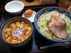 新発田市の人気店「麺豪とらまる」です。最近新発田と言ったらここに行きますね。ラーメン奇行と言いながら、ここの唐揚げにはまっています。メニュー的には寅カラと言いますけどね。超ボリューミーでカラッとジューシー。食べきれなければ持ち帰りもOK!これで¥580。今日も寅カラ麻婆つけ麺¥800?をオーダー。このお店のらーめんも捨てがたいですよ。王道のラーメンもなかなかのレベルですし、変わりメニューがまた美味い!カレーラーメンも麻婆ラーメンも食べましたが、今までのラーメンの感覚を変えてくれました。ところが麻婆系がリニューアルしちゃいました。辛さ追求タイプのものになってしまい、麻婆ラーメンが辛さ2でつけ麺が辛さ3とのこと。あまり唐辛子の辛さに強くないくにちゃん。前にラーメンと食べたのでつけ麺に行きたいのですが、辛さが強い。葛藤を繰り返しながら、結局つけ麺をオーダー。冷たければ辛さも抑えられるだろうなんて安易な判断です。唐揚げに合わせながら出してくれるので、ちょっと長めな10数分の待ち。まずつけ麺登場。つけ汁の麻婆豆腐に茹で野菜と大振りチャーシューがのった麺。付け合わせに生卵。店員さんから「最初は卵を割らずに食べてください。半分くらい食べたら卵を割って食べるとマイルド感が味わえます。」だって。言われるがまま、まずはそのまま食べてみました。辛っ!でも美味っ!2口目、3口目。これが限界でした。口の中はヒーハー。すかさず卵を割って食べました。確かに全然違いマイルドで食べやすくなりました。最初から割れば良かったかな。続けて寅カラ登場。相変わらずのボリュームです。だからラーメンは大盛にはしません。絶対食べきれないもん。今日もアツアツカラッとジューシー。美味しくいただきました。
