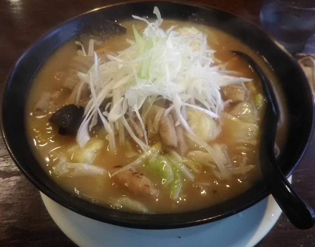 長岡市大島本町の人気店「らーめん居酒屋あじと」です。くにちゃんお気に入りの一店です。一番のお気に入りは背脂醤油らーめんですが、最近は日替わりにハマっているんです。通常メニューのものは¥50~¥100くらい安くなりますし、通常メニューにないものをだしてくれたりするんです。くにちゃんはそっち目当てです( ´艸`) 今日はスタミナホルモンらーめん¥780?大盛+¥100です。10分ほどでらーめん登場。ホルモンと野菜を炒めた具材がたっぷりとのって、その上に白髪ねぎもたっぷり。アツアツの醤油スープにコリコリとした歯ごたえのホルモン。段々と気温の下がり始めた今日このごろ。いいですね。体も温まり、スタミナ満点。ごっちゃんです( ´艸`)